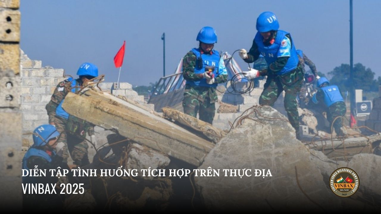 27/11/2025Sáng 27/11, tại thao trường huấn luyện của Tiểu đoàn 31, Lữ đoàn 28, Quân chủng Phòng không - Không quân diễn ra buổi trình diễn tình huống tích hợp trên thực địa được tiến hành bởi lực lượng Việt Nam và Ấn Độ trong khuôn khổ Diễn tập song phương giữa Việt Nam và Ấn Độ về gìn giữ hòa bình Liên hợp quốc năm 2025 (VINBAX 2025).