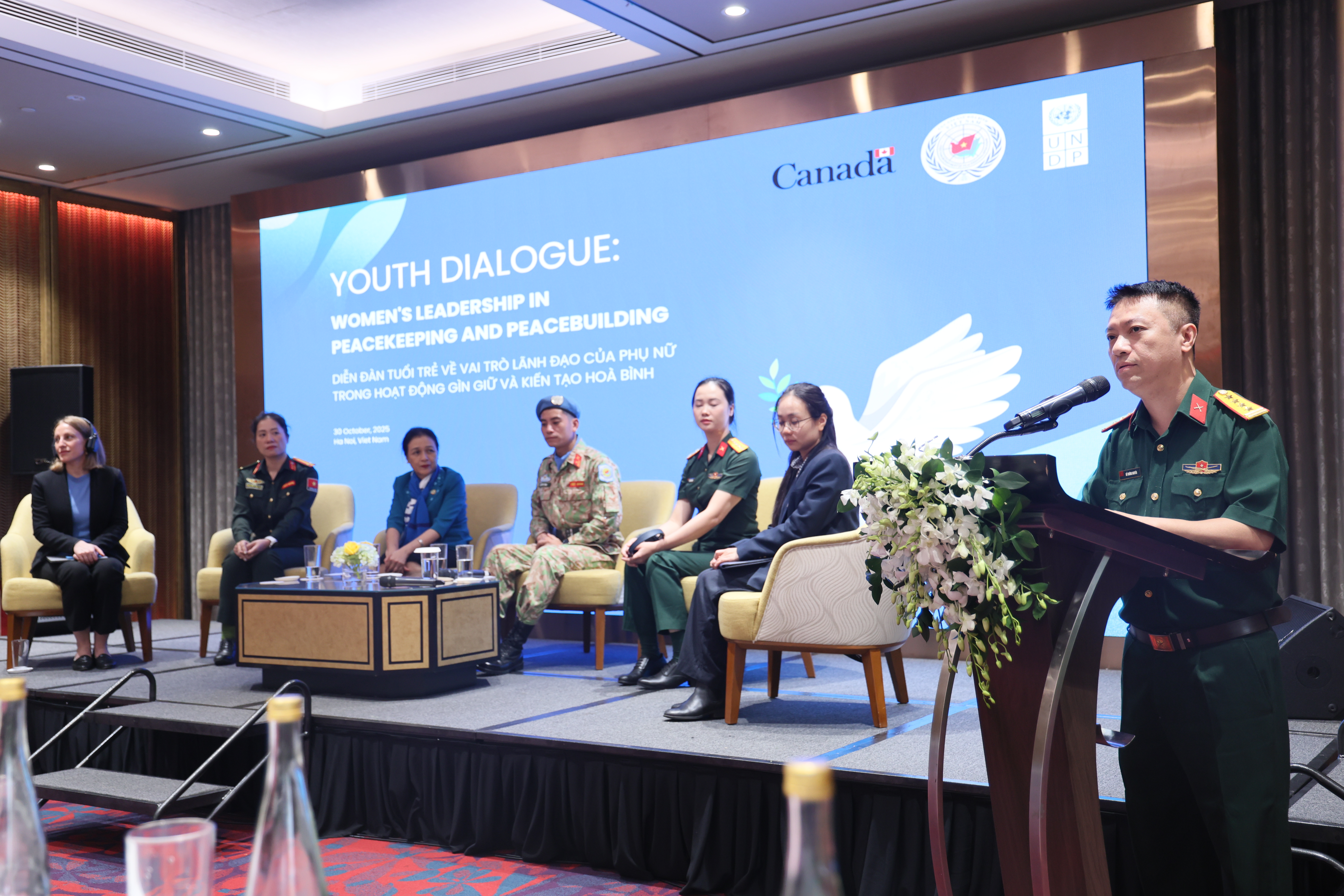 30/10/2025Sáng 30/10, tại Hà Nội, Cục Gìn giữ hoà Bình Việt Nam phối hợp với Chương trình Phát triển Liên hợp quốc tại Việt Nam (UNDP) và Đại sứ quán Canada tổ chức Diễn đàn tuổi trẻ về vai trò lãnh đạo của phụ nữ trong hoạt động gìn giữ và kiến tạo hoà bình.