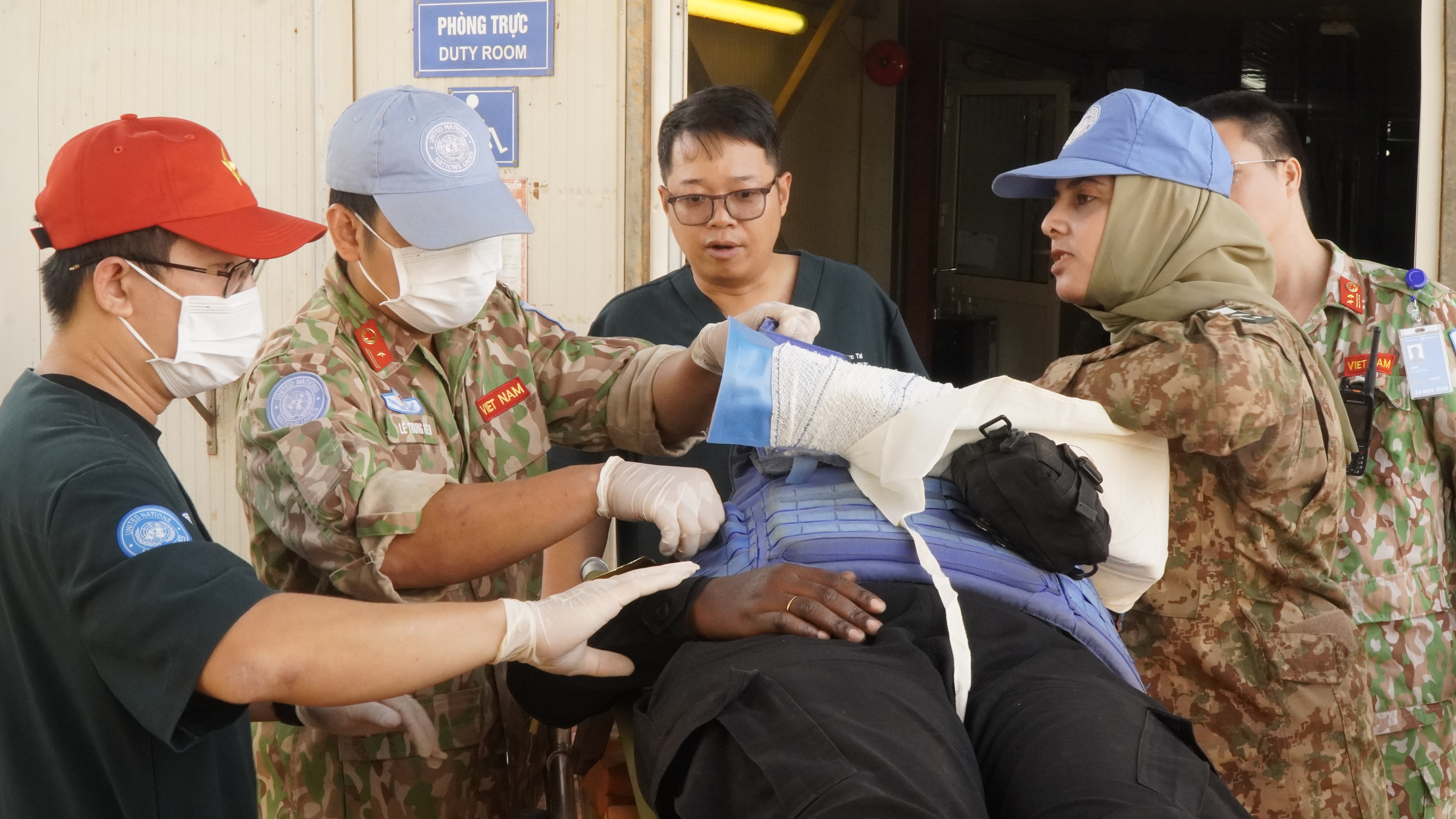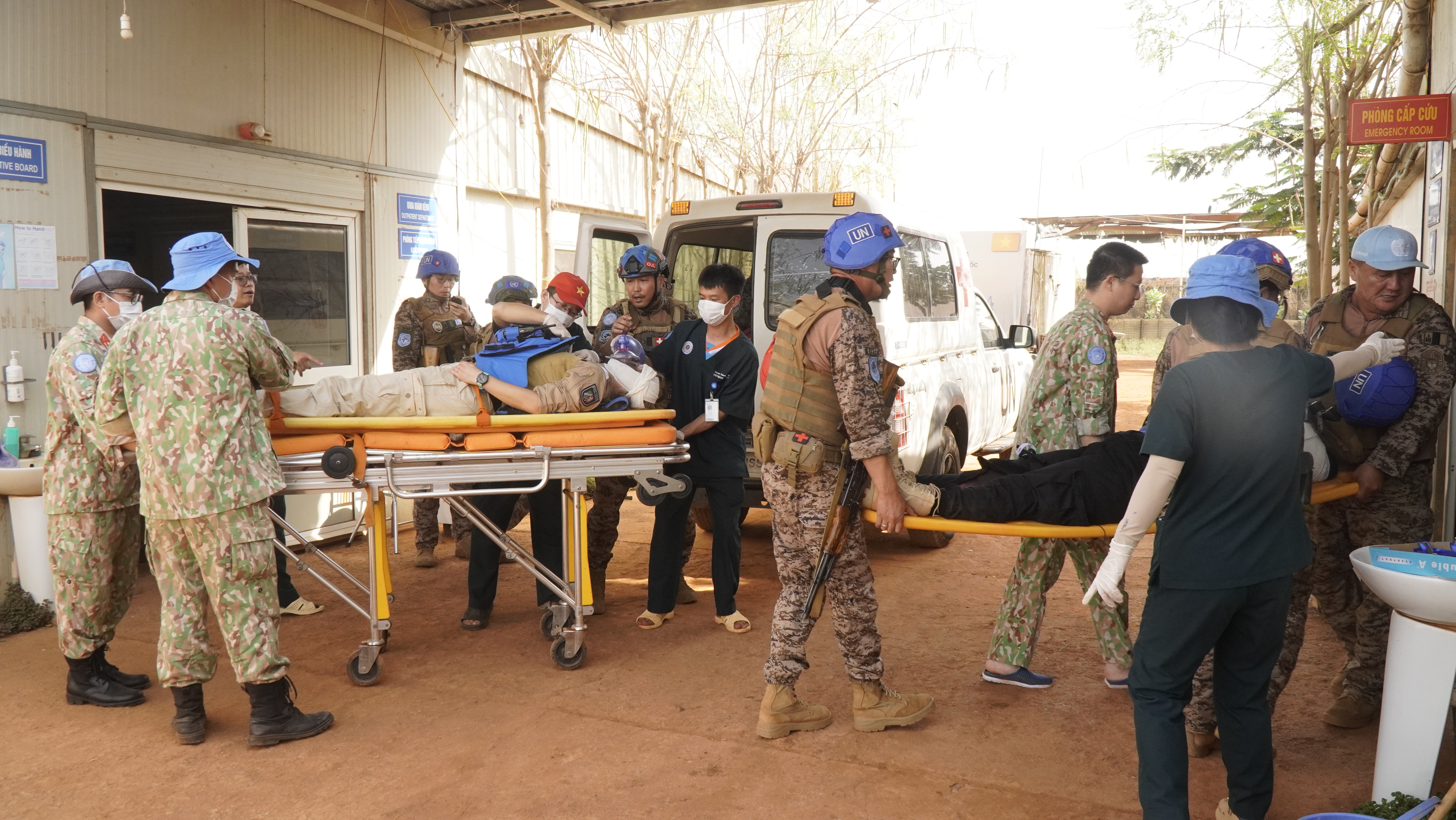10/12/2025Ngày 9/12/2025, tại Bentiu, Bệnh viện Dã chiến cấp 2 số 7 đã tham gia diễn tập ứng phó tình huống xử trí bệnh nhân tổn thương hàng loạt theo kịch bản thực tế được xây dựng bởi cơ quan y tế phân khu và bộ phận điều hành khẩn cấp Phái bộ Liên hợp quốc tại Nam Sudan.