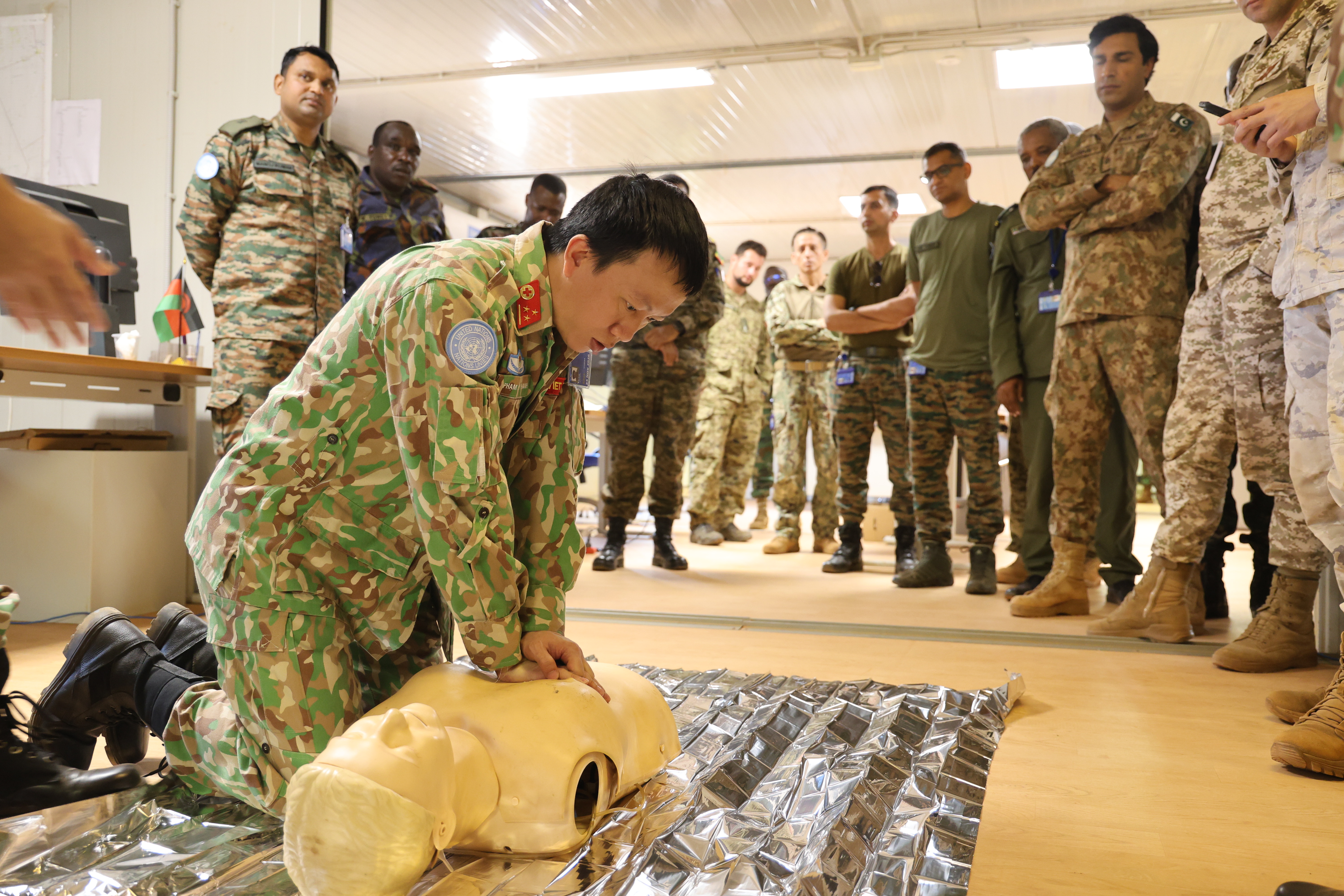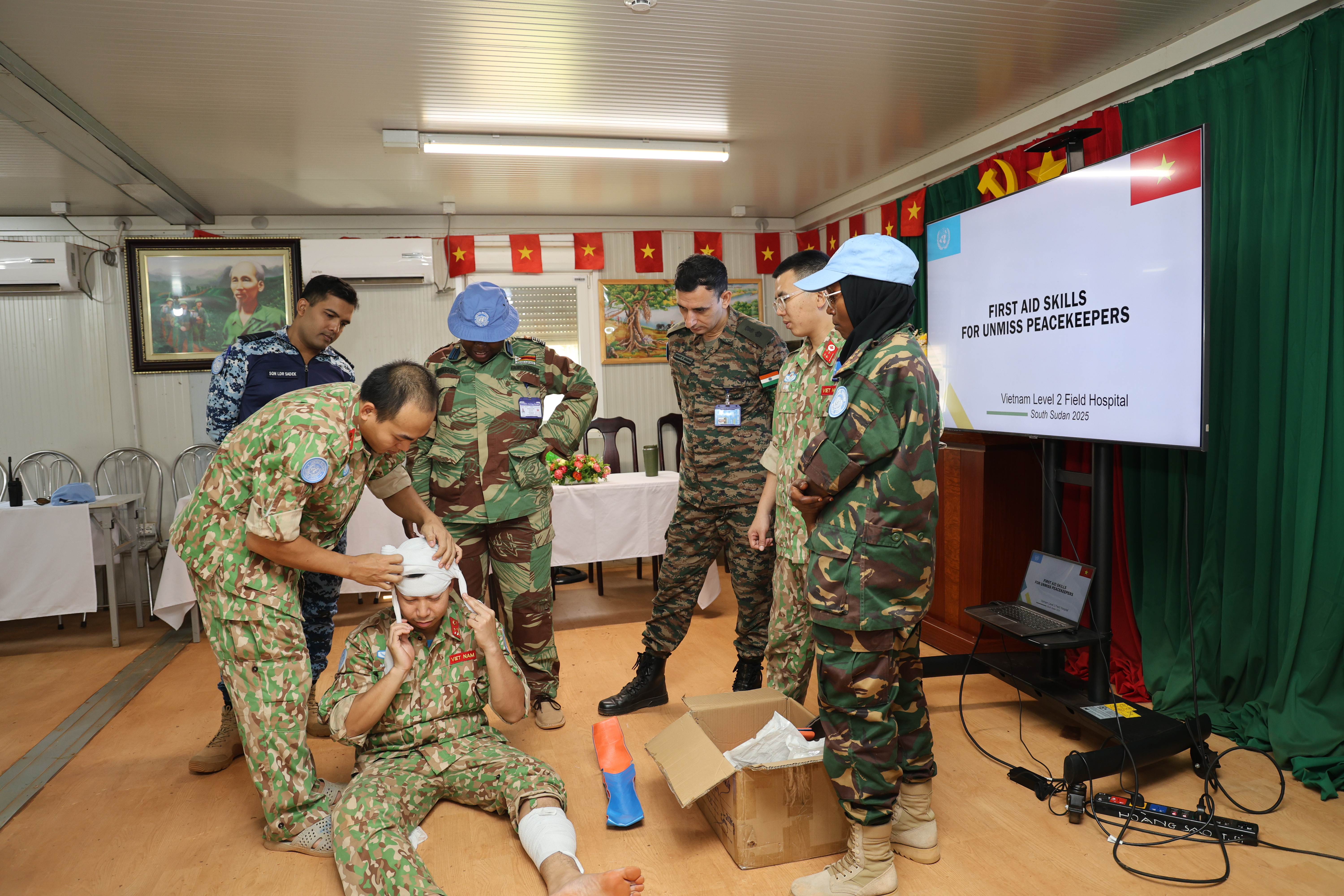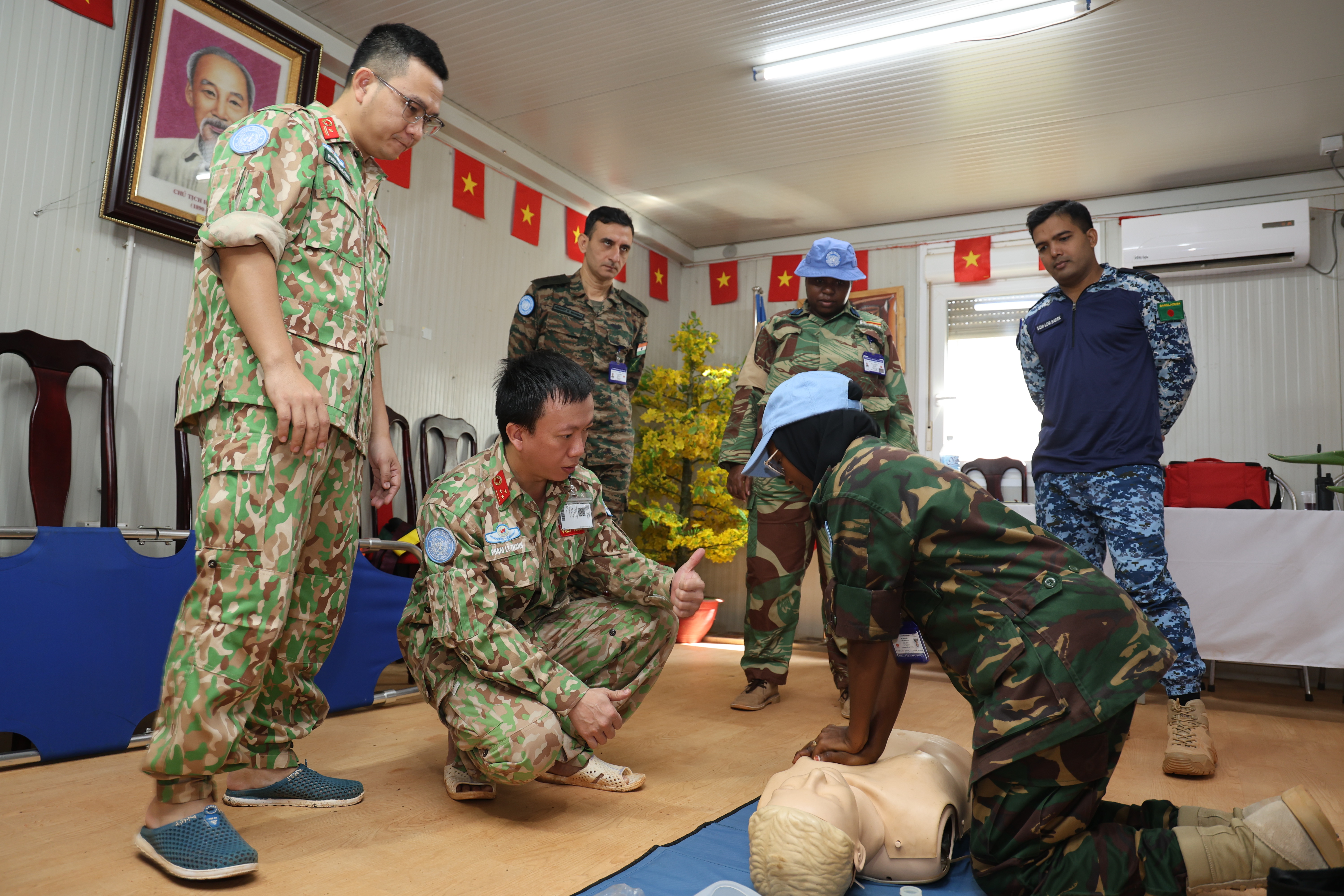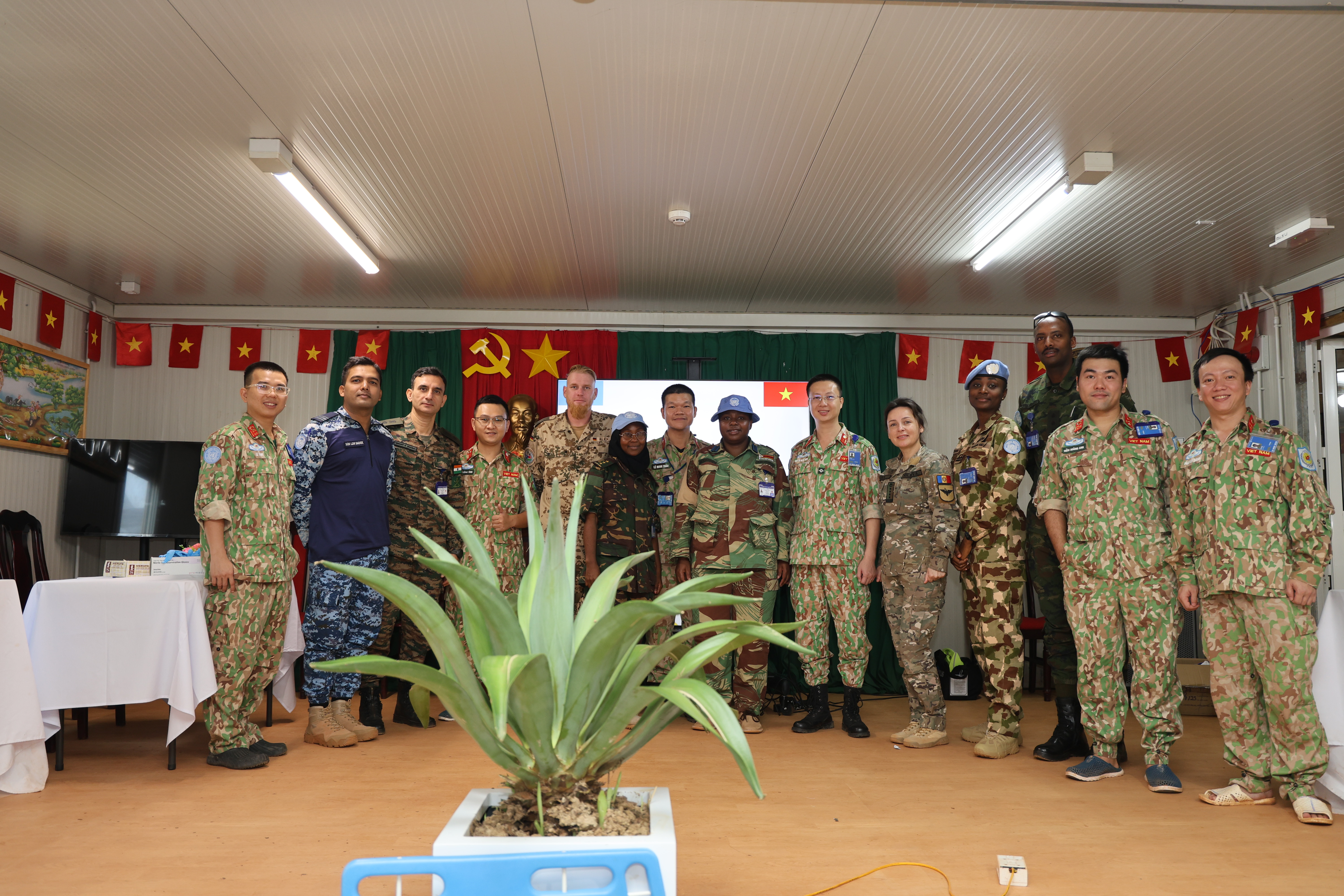 30/05/2023Sáng ngày 27/5/2023 tại sân vận động Phái bộ UNISFA, khu vực Abyei diễn ra Lễ kỷ niệm 75 năm Ngày Quốc tế về lực lượng Gìn giữ hòa bình Liên hợp quốc. Dự chỉ đạo và chủ trì buổi lễ có Thiếu tướng Benjamin Olufemi Sawyerr - Quyền trưởng Phái bộ, Tư lệnh quân sự; Chuẩn tướng Abu Syed Mohammod Babikir - Phó Chỉ huy trưởng lực lượng quân sự (DFC) cùng lãnh đạo, chỉ huy các cơ quan, đơn vị và toàn thể cán bộ, nhân viên thuộc Phái bộ UNISFA. Về phía Đội Công binh Việt Nam có các đồng chí trong Ban chỉ huy Đội, chỉ huy các phân đội và 17 đồng chí trong khối duyệt binh. Tham gia duyệt binh tại buổi Lễ còn có 7 khối của các đơn vị bao gồm: Tiểu đoàn Bộ binh Ấn Độ, Tiểu đoàn Bộ binh Ghanna, Tiểu đoàn Bộ binh Pakistan, Tiểu đoàn Bộ binh Băng la dét; Đơn vị Nigeria Bảo vệ Sở chỉ huy phái bộ; đơn vị Nepal Bảo đảm phục vụ Sở chỉ huy phái bộ và đơn vị Trực thăng Trung Quốc.