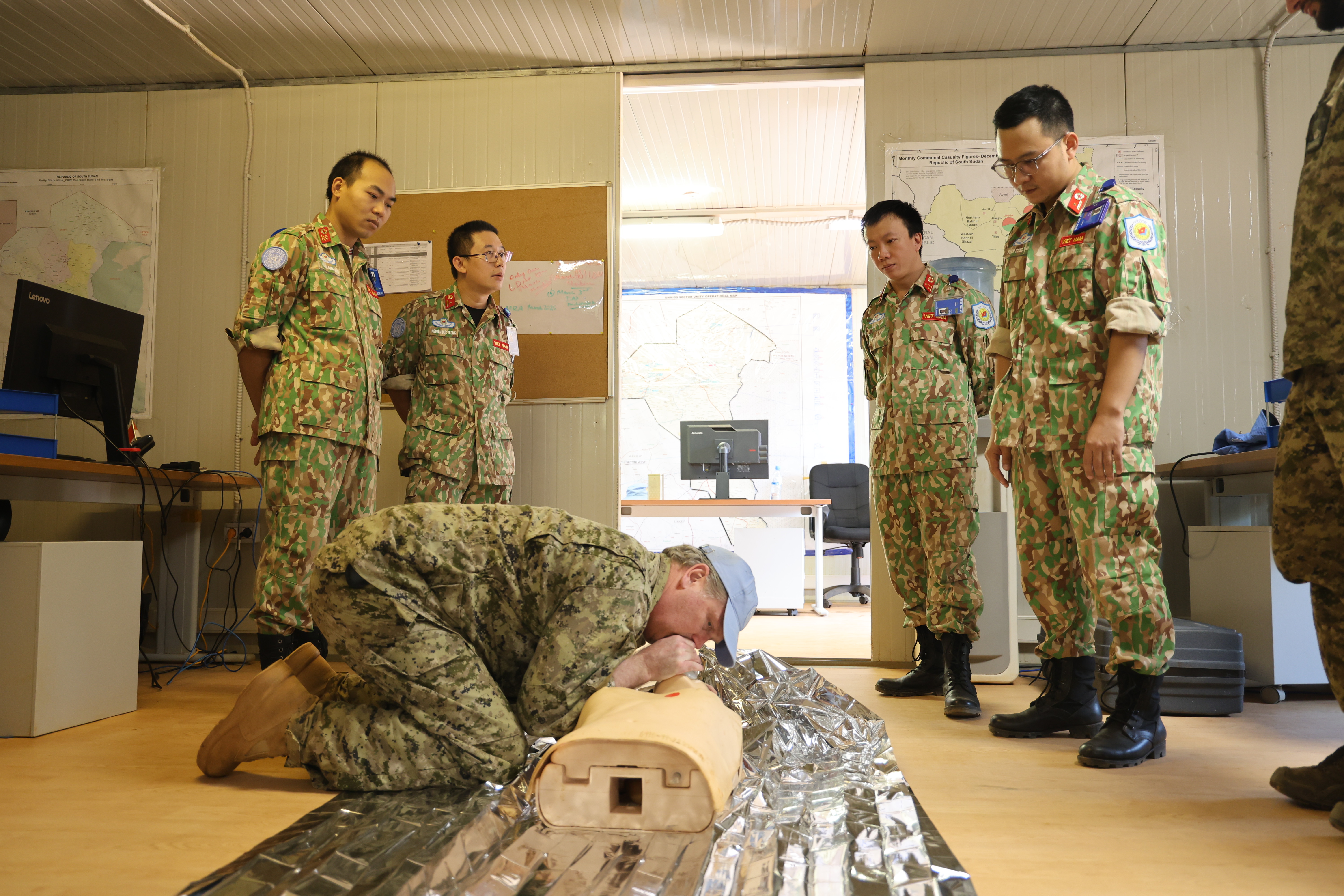 Tại buổi giao lưu, Thượng tướng Phùng Sĩ Tấn, Thiếu tướng Hoàng Kim Phụng- Cục trưởng Cục Gìn giữ hoà bình Việt Nam, Thiếu tướng Nguyễn Đức Bằng- Phó Chánh Văn phòng Thường trực về gìn giữ hoà bình Liên hợp quốc (Bộ Công an) đã trò chuyện với các cán bộ, nhân viên, chiến sĩ đang làm nhiệm vụ tại các địa bàn qua màn hình kết nối trực tuyến. Các đồng chí đã thăm hỏi động viên và chia sẻ những khó khăn, vất vả với các chiến sĩ mũ nồi xanh đang thực hiện sứ mệnh quốc tế đã phải đón một cái tết xa nhà, xa người thân. Xúc động lắng nghe chia sẻ tâm tư, tình cảm của các cán bộ, nhân viên Bệnh viện dã chiến cấp 2 số 4, Đội Công binh số 1 số và các thành viên Tổ công tác- Đại tá Mạc Đức Trọng- Đội trưởng Đội Công binh số 1, Chỉ huy trưởng Lực lượng gìn giữ hoà bình Liên hợp quốc của Việt Nam ở Phái bộ UNISFA bày tỏ: Mặc dù phải đón tết xa Tổ quốc còn nhiều thiếu thốn không đủ đầy như ở quê nhà, nhưng được sự quan tâm của Thủ trưởng các cấp, chỉ huy đơn vị, kế hoạch chuẩn bị đón Tết được triển khai từ sớm, Tết của các chiến sĩ mũ nồi xanh ở nơi xa xôi đầm ấm, vui tươi bên đồng chí, đồng đội.
