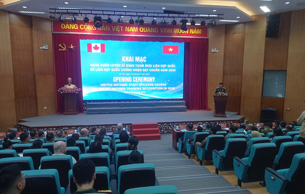 13/01/2026Sáng 12/1, tại Hà Nội, Cục Gìn giữ hòa bình Việt Nam phối hợp với Đại sứ quán Canada tại Việt Nam tổ chức Khai mạc Khóa huấn luyện sĩ quan tham mưu Liên hợp quốc năm 2026 (UNSOC 2026) do Canada hỗ trợ.