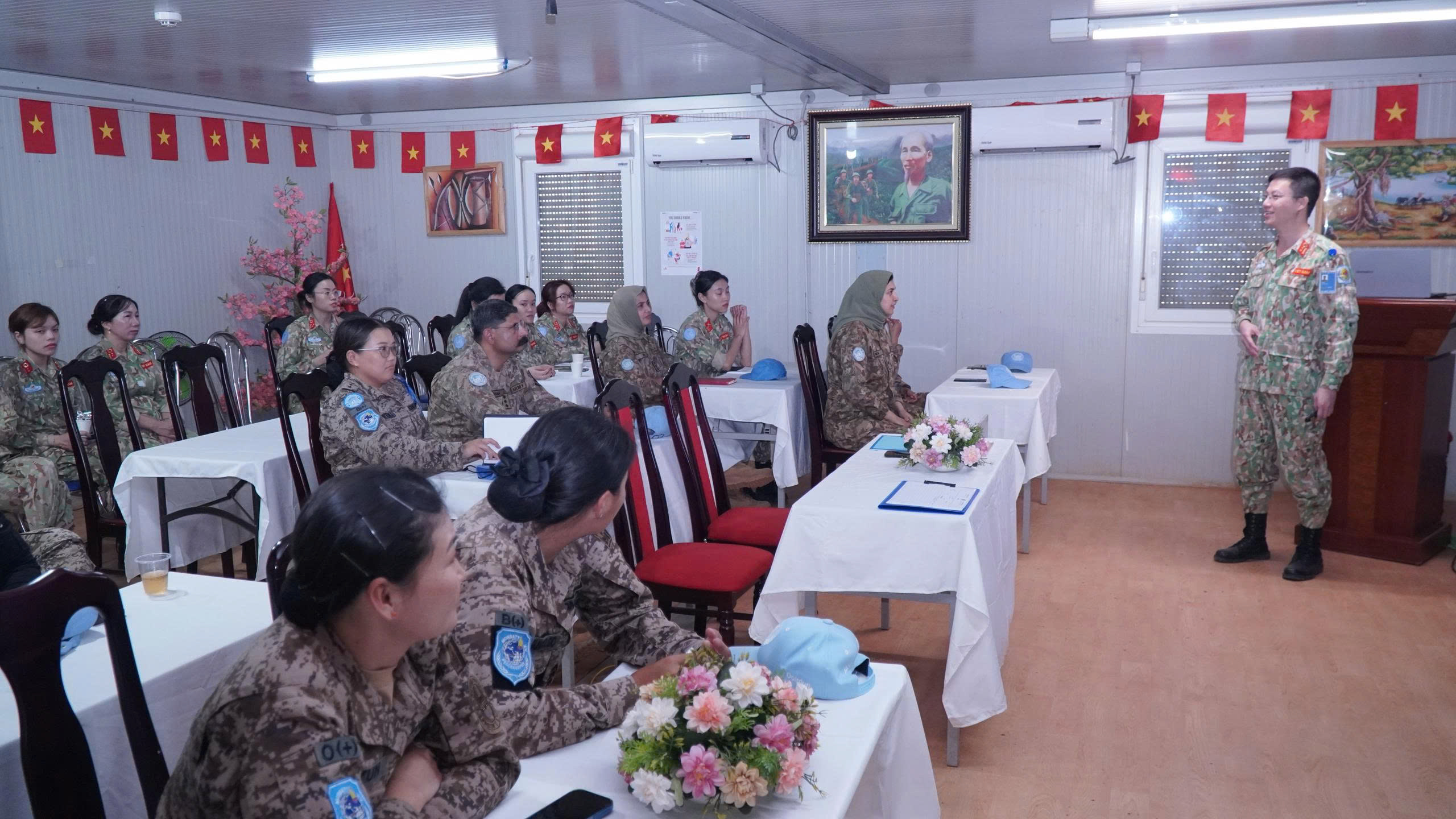23/04/2026Trong khuôn khổ các hoạt động hướng tới kỷ niệm 51 năm Ngày Giải phóng miền Nam, thống nhất đất nước và Ngày Quốc tế Lao động, BVDC 2.7 đã tổ chức Hội thảo khoa học dành cho nữ quân nhân đang công tác tại căn cứ Bentiu, Nam Sudan.