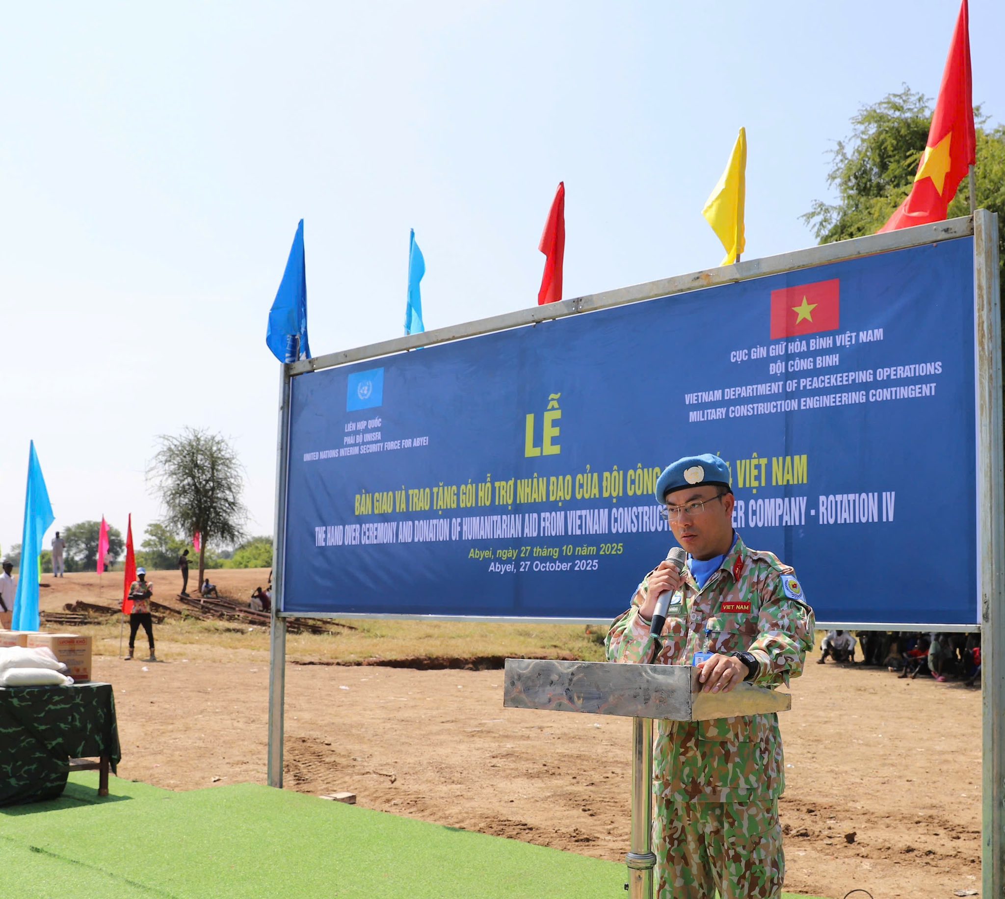 28/10/2025Ngày 27/10, tại khu vực Abyei, lễ bàn giao cây cầu Banton đã được tổ chức trang trọng ngay tại công trình do Đội Công binh số 4 Việt Nam sửa chữa, khôi phục.