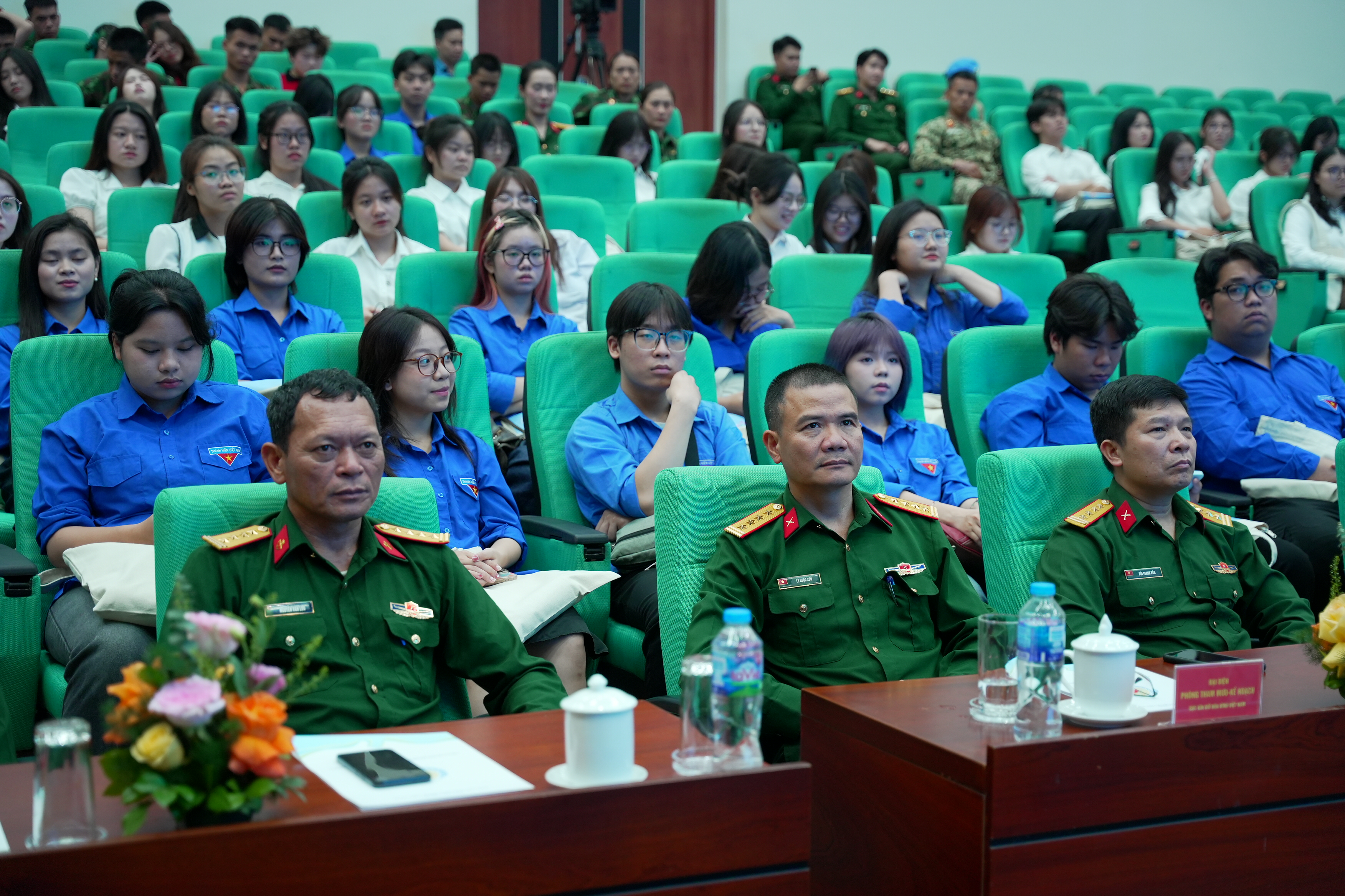 Cán bộ, chỉ huy Đội Công binh Việt Nam chụp ảnh lưu niệm với các đại biểu tham dự tọa đàm.